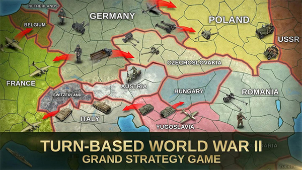 ●第二次世界大战军事行动的详细地图。从几十个国家中进行选择,并在欧洲或亚洲进行冲突。更新将带来新的国家和地图!