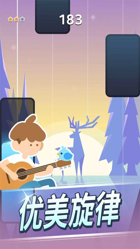 治愈音符游戏最新版本是一款由 12MOMENTs Corp 推出的音乐节奏类手游,游戏整体画风清新治愈, 简洁的用户界面,搭配优美舒缓的音乐旋律,不仅能起来晚安催眠的作用,甚至还能陪伴玩家度过闲散的午后。另外,该游戏的操作也非常简单,选择您喜爱的音乐,通过“点击”或“长按”来演奏不同曲目,通过赚积分升级,并解锁更多音乐曲目。同时其中高质量的吉他与钢琴音效一点也不亚于真实乐器所迸发出来优美旋律,通过优美的旋律治愈生活中的烦恼,如果有感兴趣的玩家,赶紧来下载体验吧!