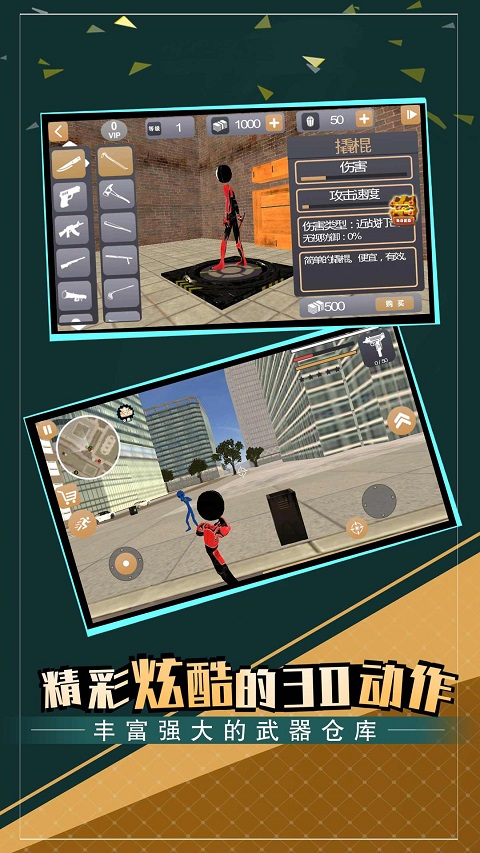 2、在城市中自由探索,操控火柴人开始作战,紧张刺激的战斗过程。