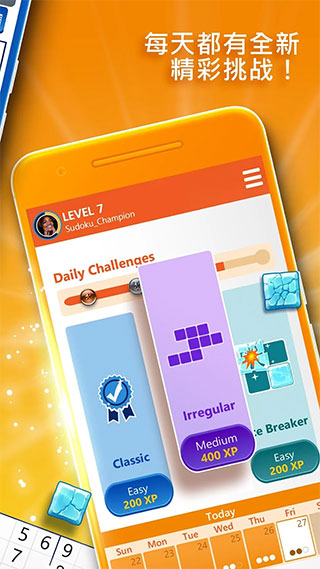 每天进行 3 项独特挑战,收集金币并赢得徽章!挑战涉及经典、不规则以及全新的破冰游戏模式!在破冰模式中,通过放置正确的数字可以向整个桌面发送冲击波,从而打破坚冰。快来试试吧,很容易的!