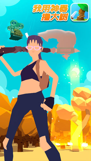 我用神器撸大树也叫做我用神器砍树,这是一款趣味十足的休闲益智解压类手游,由知名游戏厂商Ohayoo精心打造,集割草、放置、经营、休闲多种玩法元素于一身,还采用了卡通的画风设计,画面精致细腻,再搭配上休闲舒适的背景音乐,可以给玩家一种非常不错的游戏体验。游戏中玩家将继承一个伐木场,化身伐木工,挥动祖传神器砍伐大树,在这里你可以享受割草砍树的快感,挥动武器将成片的树林砍成平地释放内心的压力与烦恼,将获得的树木加工成木料,在无人机的帮助下送到工坊生产木制品,出售并赚取金币升级伐木场,最终成为伐木大亨,业界楷模,走上伐木工巅峰。另外,我用神器砍树游戏还拥有全新的时装你可以去更换,每种不同的时装拥有不同的加成,不穿也会有效果,不同的场景和树木你也是可以去砍伐的,趣味的挑战正在等待着你,玩家可以不断的去砍伐树木经营你的小工厂,慢慢的感受休闲的乐趣。