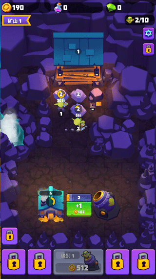 2、以哥布林矿工挖掘黄金为背景的放置合成模拟经营游戏,玩家在游戏中雇佣并合成哥布林矿工。