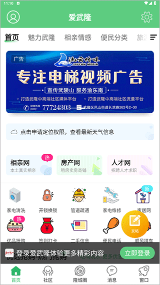 爱武隆app是爱武隆网站为武隆市民精心打造的一款集吃,喝,玩,乐等于一体的一站式消费分享和交流的社区平台,囊括武隆本地化的综合资讯,关注百姓生活的方方面面,在这里,分享本地热点,交流生活故事,结石同城好友,为武隆市民提供及时全面的生活服务信息。