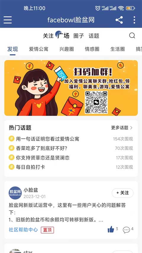 [圈子]:关注感兴趣的圈子,寻找同兴趣的朋友。