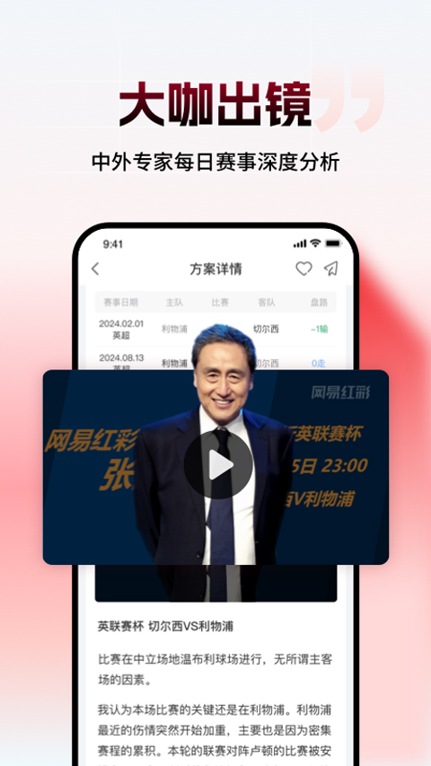 网易红彩app手机版是由网易传媒科技(北京)有限公司为广大球迷们精心设计的一款专业的竞彩预测直播分析应用,聚合全国各地知名专业解说、实战高手及外籍操盘手入驻,针对彩民朋友的日常投注购彩需求,通过智能数据模型高效预测比赛,打造多角度、全方位的数据展示,帮助彩民获取最新比分实时动态预测与真实赛况。