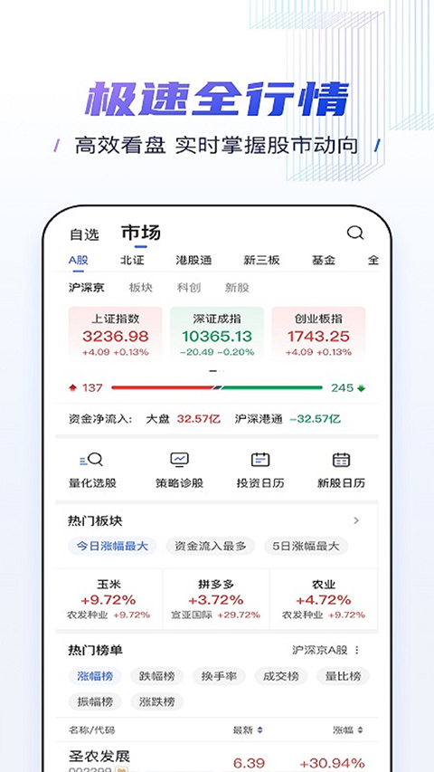 申港证券app作为总部位于上海自贸区的中国证监会批复的首家根据CEPA协议设立的合资全牌照证券公司——申港证券的官方移动交易平台,集高效、便捷与全面服务于一体。用户可享7*24小时闪速开户,享受佣金费率优惠及新客专享理财产品。在申港证券app内,沪深A股、新股新债、港股通、北交所、科创板、创业板、场内基金、债券、国债逆回购等多元化证券产品均可交易,满足各类投资需求。此外,V+投顾服务通过金牌投顾的视频直播,利用碎片时间引领用户洞察市场新方向;申港资讯模块则实时更新财经新闻与价值热点,助力用户做出明智决策。同时,APP还提供多因子量化选股、智能策略股票诊断等量化工具,以及优惠利率的融资融券服务,为专业投资者和追求财富增值的用户提供更多可能,有需要的用户可以在本站免费下载使用。