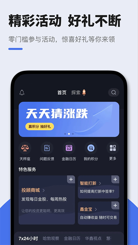 华鑫证券星途Starway是一款智能投资软件,该应用全面支持证券等多市场交易,包括新股申购、国债逆回购、融资融券、理财产品、开放式基金等,并且行情快速稳定,操作简单便捷,更有AI策略选股、智能套利组合等创新功能,为投资者提供一站式服务,同时在这里用户还可以找到各种各样的特色服务内容,通过各种服务帮助用户抢先了解各种动态,从而抢占先机,为投资者提供更多投资机会。