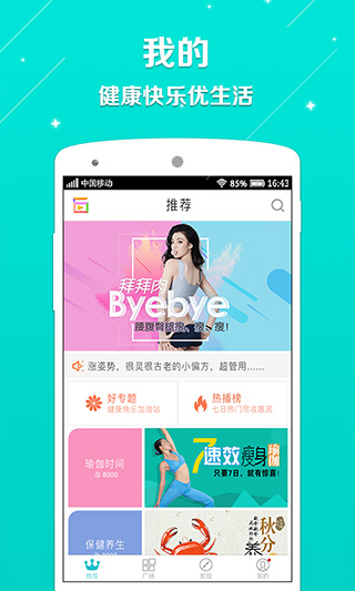 涵盖最受欢迎的大众生活实用主题,兴趣爱好、生活技能一站get!<百映优生活>TV端已覆盖3000万用户,是深受欢迎的健康生活多屏应用。