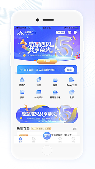 众邦银行app是由武汉众邦银行股份有限公司针对国内用户特别研发的一款理财服务类软件,它以智能风控为核心,基于真实交易场景,连接线上线下,为个人消费者和小微企业主提供各类消费信贷服务,也能以直销银行建设为中心,产品创新能力及场景运营能力两力驱动,推进直销银行建设的平台化、移动化、智能化,帮助用户轻松搞定存款、贷款、投资等操作。