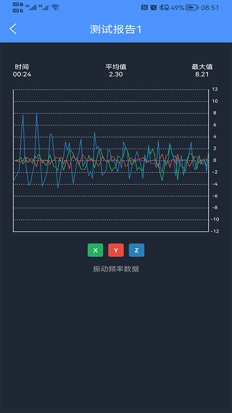 当三个方向显示为空白时,则表示无数据呈现,点击任意一个就可以呈现那个方向的震动数据