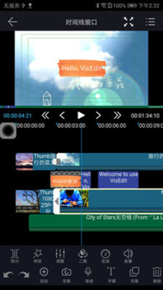 1、【快速剪辑】提供了和电脑上的编辑系统相媲美的快速剪辑工具,方便您对素材进行入出点剪辑、拆分、对齐等操作。