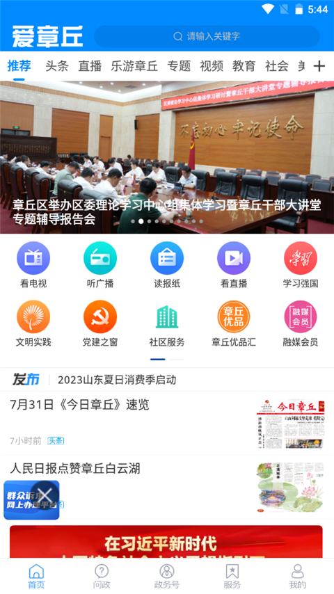 此外,爱章丘作为新闻宣传移动宣传平台,除了最新资讯外,还具备看电视、听广播、读报纸、直播、推荐、头条、本地、等等功能,能够果最大化起到宣传效果,传递章丘好声音、树立章丘新形象。