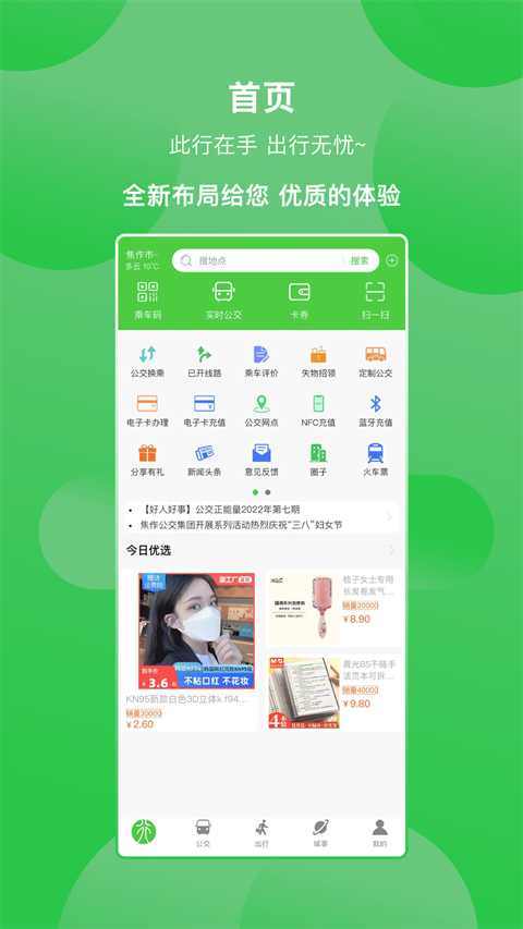3、进入首界面,能够实时查看公交、路况、骑行等;