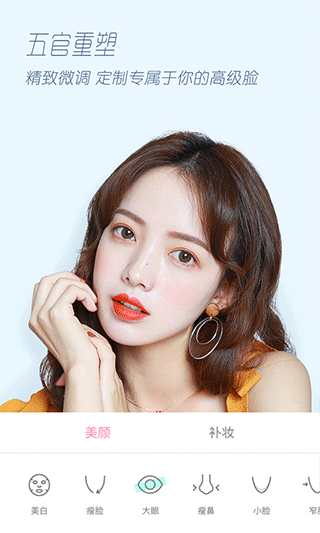 实时脸部微调,眼鼻嘴精心雕刻出的细致效果,后期不用再P!支持定制化保存五官模板,每次拍照都是仙女本仙~