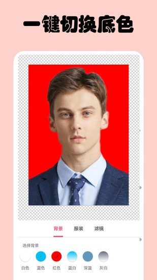 证件照底色当然也非常关键,这里有白底、蓝底、红底6种颜色,可以让你随心所欲的切换底色。
