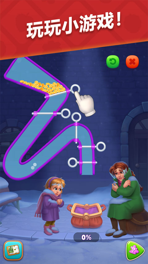 玩家按照老管家的指引,从打理花园乱草、修建树屋等简单工作开启,这些工作的步骤都是以剧情任务的形式展开,不再是单一的消除闯关。玩家根据任务步骤将庄园慢慢经营起来,完成任务需要消耗“星星”,而“星星”来自消除玩法过关获得。别具一格的特色剧情和主线任务系统,让消除不再单一。