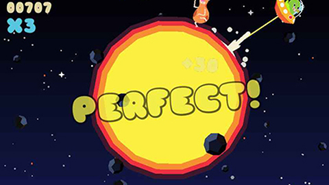 3、星球的转动也是按照BGM的节奏走走停停,每次只需要应对单个目标