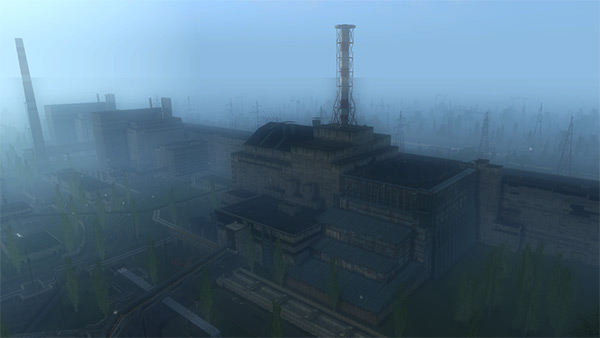 3、将精确重建的切尔诺贝利发电厂建筑群从被摧毁的第四单元反应堆导航到建筑群的郊区。