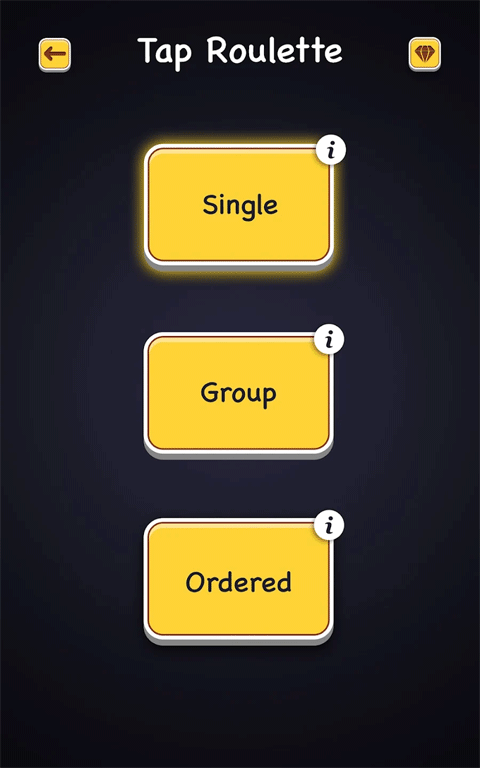 3、Tap Roulette带你进入公平的随机点击方式,指向谁就是谁的操作;