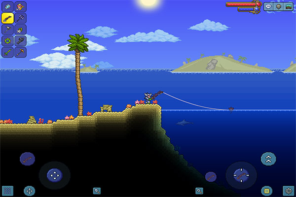 值得一提的是,泰拉瑞亚游戏的生活非常有意思,在这里是日夜交替的在早晨,玩家可以到处乱跑,也可以建造各种庇护所等等,而当夜幕降临后僵尸和各种眼球怪就会出现,要么杀死他们,要么就逃走。但是,黑暗的地下才是真正刺激的地方,一些必需品玩家可以在地表找到,但稀有的材料只会出现在地下,十分考验玩家的冒险能力。