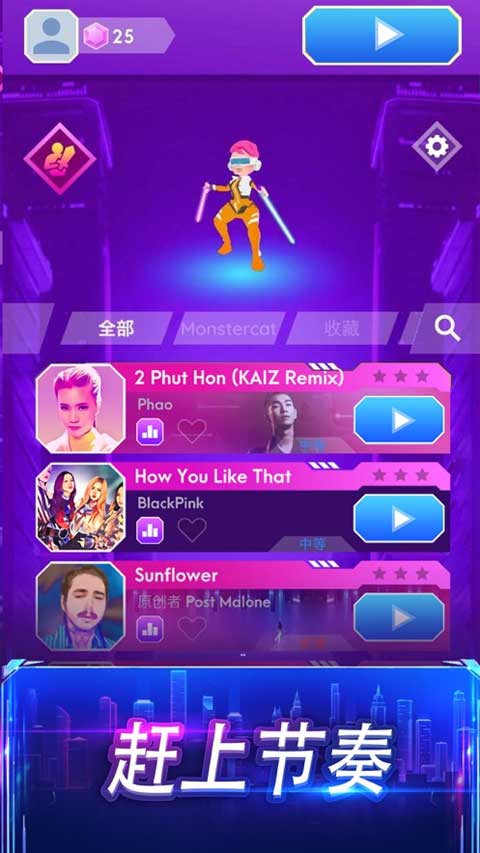 4、游戏的视觉冲击感很强,炫酷的游戏场景,把音乐打造成一场奇妙的赛博朋克之旅。