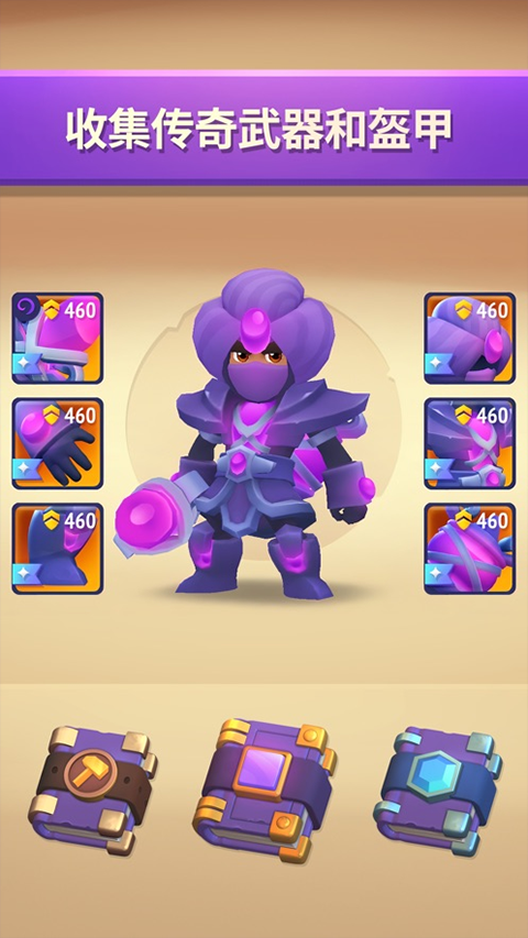 2、更多装备:使用头盔、手套、胸甲、靴子和斗篷或盾牌装备您的骑士