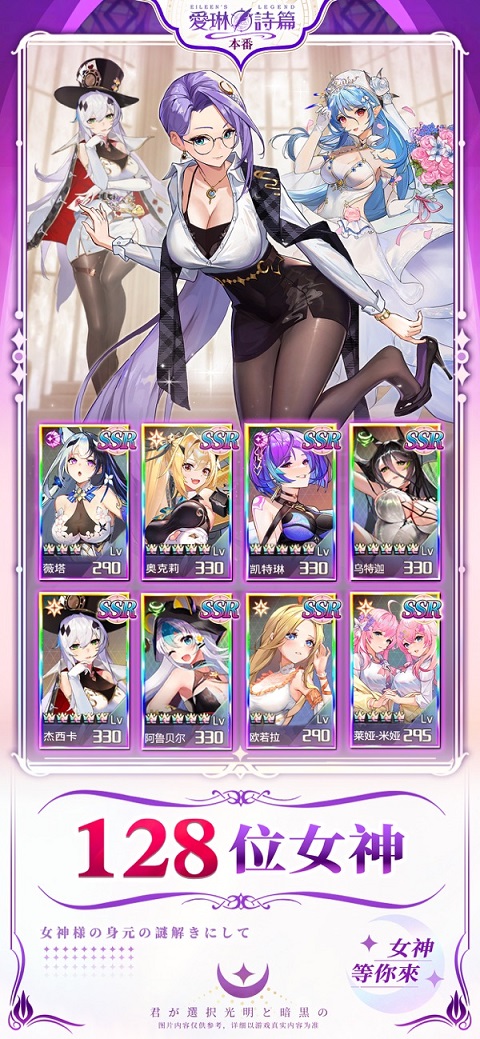 召唤、升阶、女神、神殿、命运之轮、锻造厂等多个养成系统助您轻松培养豪华阵容!海量多元化副本,多线分支剧情,选择你的专属剧情,开启奇幻诗篇!