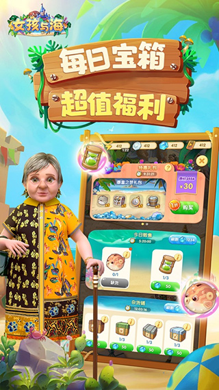 女孩与海苹果版是一款非常有趣的休闲益智解压类手游,游戏整体采用了非常经典的3D卡通画风呈现,丰富治愈的玩法元素,搭配灵动悦耳的背景音乐,带给玩家全新的休闲解压体验。该游戏故事是从帮助奶奶修缮海岛房屋开始,玩家需要通过消耗能量合成各种新道具不断修复破旧的乐园场景,或者使用钻石来购买一些道具帮助你填充装饰,这里的人们也非常友善,玩家可以帮助npc,获得自己需要的资源道具,开启全新的样貌,让月月和奶奶的家变得更加美丽。