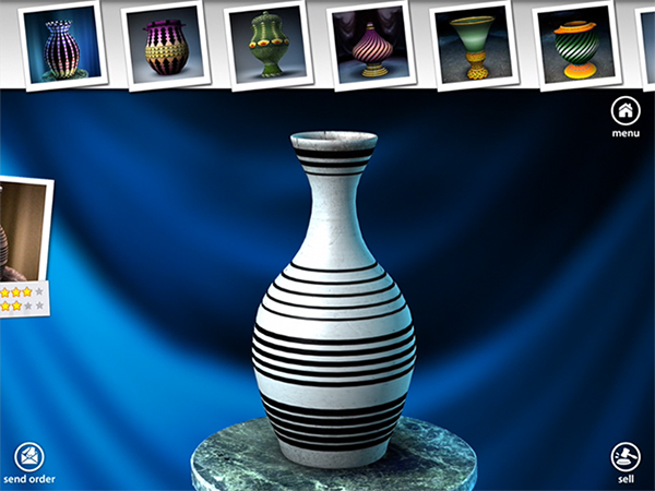 当对陶罐的造型比较满意的时候,点击屏幕右下角的firing图标,就可以将土胚放到窑中烧制。不过不用担心,只需几秒钟烧制过程就完成了。烧制完成的陶器造型十分逼真,甚至可以看到瓶口的细小的裂纹。