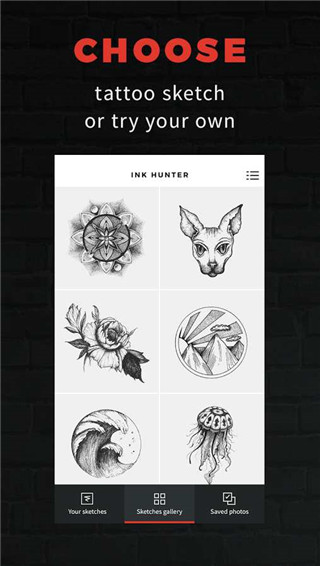 INKHUNTER ios版是一款能让用户不用费钱受痛就能拥有纹身效果的智能AR拍照相机,该软件以时下大热的智能AR现实增强技术为核心,结合智能拍照的便捷高效特点,可以让用户通过简单的手机拍照模式就能轻松获取真实的纹身效果,使用过程十分简单轻松,只需在手臂上花个笑脸,选择喜欢的纹身对准笑脸就能完美呈现出纹身。