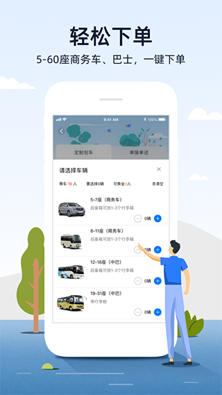 人人巴士ios版是主打汽车分时租赁的一款专业包车服务平台,该平台以分时租赁模式为基础,全面整合线下优质的车辆资源,提供涵盖市内包车、旅游包车、长期包车、接送飞机与火车、顺风回程车等多种车型,可让用户在线选车、预约下单、支付、用车、还车,所有操作全程手机线上完成,没有任何工作人员介入,不收取任何额外手续费用。并且人人巴士软件操作过程简单轻松,哪怕是小白用户第一次使用,也没有任何使用障碍,能够全方位满足不同用户的个性化出行用车需求。有需要的话就赶快来下载吧。