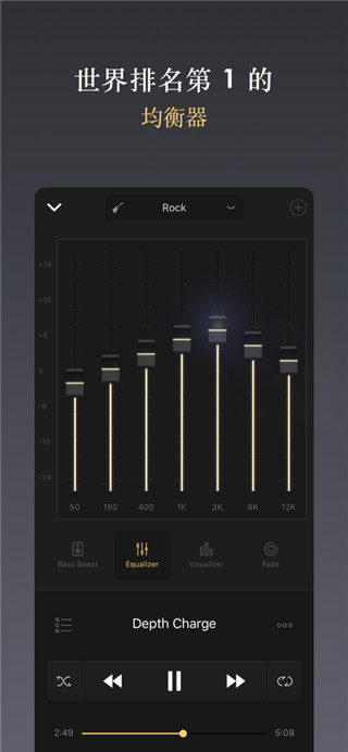 低音均衡器苹果版是一款功能强大的低音增强工具,帮助您改音频的质量,是音效增强的神器!软件一共有5个波段可以调节,能自己调整音量和频率,你可以自定义推荐调节,实现了虚拟3D环绕的音质效果和低音增强效果,让你每次听音乐都能享受到非凡的体验;