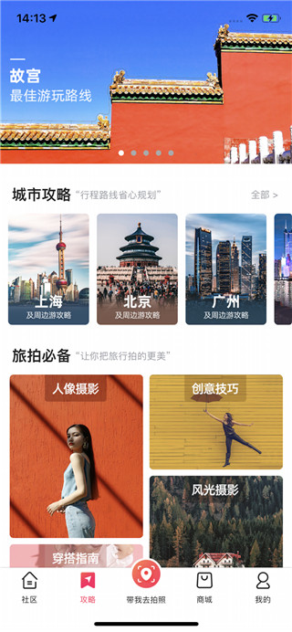 2、实战训练营、相机选购指南、旅游打卡地图。