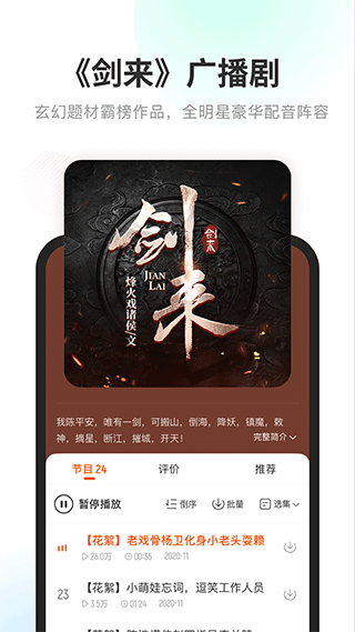 1、有声小说:庆余年、大医凌然、诛仙、完美世界、赘婿、圣墟、伏天氏、武炼巅峰、万古神帝、天下第九、修罗武神、校花的贴身高手、人民的名义、一念永恒、回到明朝当王爷、异世邪君、将夜、全职高手、大明风华。