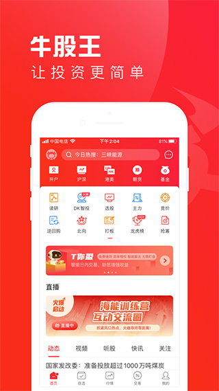 牛股王ios版是一款非常专业的手机股票软件,能够免费订阅一些股票达人追踪的股票,让自己也能够跟着他们一起赚钱,支持查看当下各个股票的涨跌情况,并且内置十分丰富的股票资讯,让你一手掌握自己关注的股票信息。软件拥有量化智能预警盯盘、活跃的股票社区、简洁的交易界面,是目前高手决战的傍身利器,小白成长的良师益友,散户赚钱的必备应用!