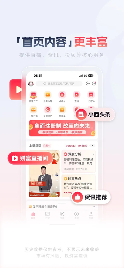 - 理财自选和持仓:全新设计理财页面,单独开辟自选和持仓模块,解决传统券商客户做理财最大的痛点;