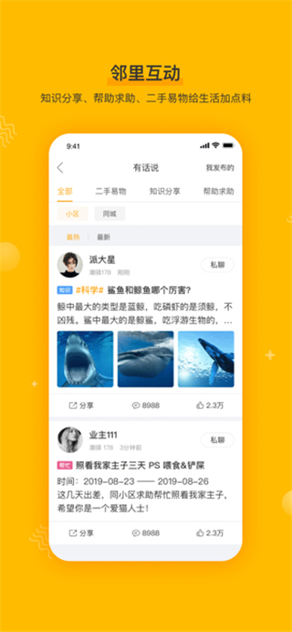 在千丁互联你还可以轻松认识周边的邻居,与他们一起分享生活中的趣事,参加丰富的小区活动,让你体验丰富的社交邻聚,小区生活从此更加有爱,需要的小伙伴们一定要来下载体验哦!