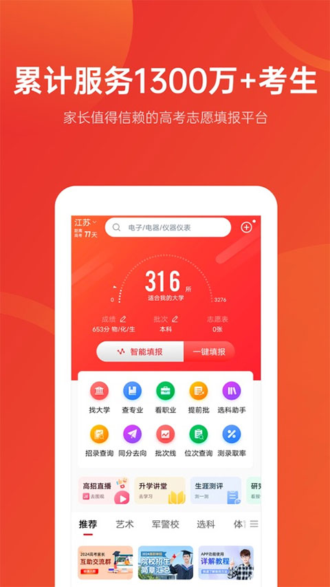根据考生高考成绩量身定制本省市、所在大区、一线城市、全国4套靠谱率高的专属志愿方案。