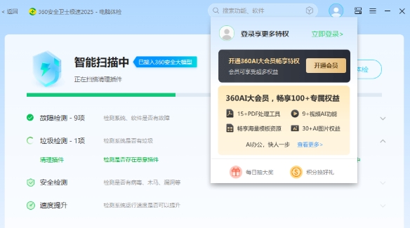 全新的智能感知与响应系统:360安全卫士搭载了先进的引擎系统,该系统整合了系统日志监测模块,能够进行全方位错误问题分析,并提供一键修复功能。当用户电脑出现异常状况时,系统将主动提供智能解决方案。