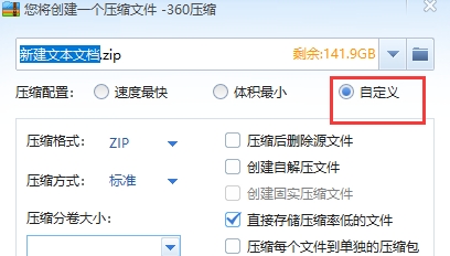 执行文件压缩时,在【创建压缩文件】界面中,用户可在【压缩分卷大小】下拉菜单中输入指定数值,即可实现文件的分卷压缩功能。