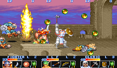 龙王战士是一款非常受欢迎的横板动作街机游戏,国内很常见的经典游戏。在许多方面龙王勇士都和圆桌武士的系统类似, 有经验升级系统, 有防御概念。特别的, 龙王勇士的剑和盾也有升级概念, 靠获得过版宝物来提升能力。另外它允许游戏者在游戏过程中替换角色, 这似乎是极其罕见的设定。当初Capcom就是以此作为D&D街机版来开发的,但是没有取得TSR公司的授权。 所以这部作品让人想起后来的超A级作品龙与地下城系列, 特别是一些敌方角色的造型设定几乎如出一辙。 不过由于较大的难度, 龙王勇士并不如Capcom同期其他几款ACT流行。