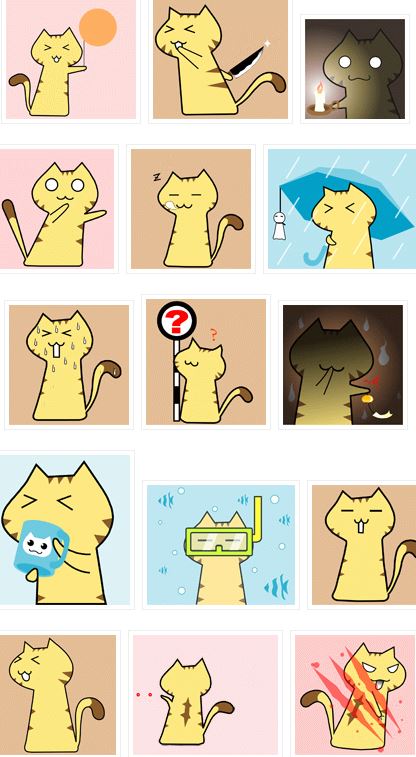 可爱小黄猫十五款qq表情,是一款非常可爱卡通的表情包,萌感爆棚,喜欢的网友赶快下载吧。一只可爱搞怪的黄色小猫咪,一身老虎斑纹,经常做一些搞笑的行为,又如此的可爱受欢迎。