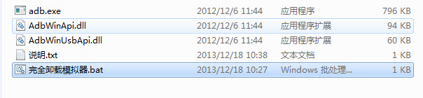 使用方法一样,使用前请先确保已经安装手机驱动(360,qq等,能识别即可),下载后将工具包解压,将手机连在电脑上,识别后运行“完全卸载模拟器.bat”。