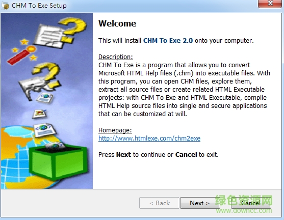 chm转exe软件(chm to exe)是一款能够chm格式文件转换成可独立执行的文件的应用工具,更能够有效的保护你的文档原创性,有需要的朋友欢迎来绿色资源网下载使用!