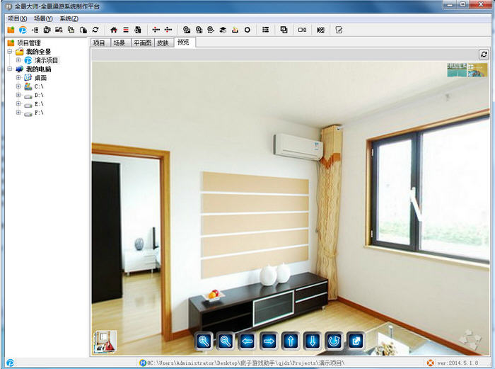 全景大师一款360度三维全景漫游展示制作软件,效果时尚逼真。并非简单的照片拼接软件,是真正意义上的全景大师。主要用于将一系列普通的全景照片制作成一套完整的全景展示系统,最终生成的展示项目可独立运行于各种设备之上,包括:iPhone、iPad、Android手机、Android平板、以及苹果电脑和各种PC上。