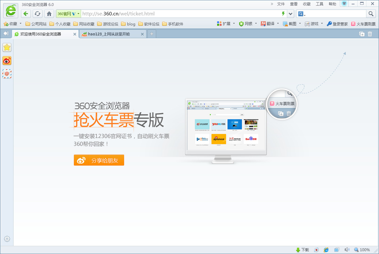 360浏览器凭借其在抢票方面的不断探索,陆续发布"预约提醒"、"代买模式"、"离线抢票"等功能,成功帮助超过3000万人买到火车票,被南京晨报评为"2013年最佳抢票软件"